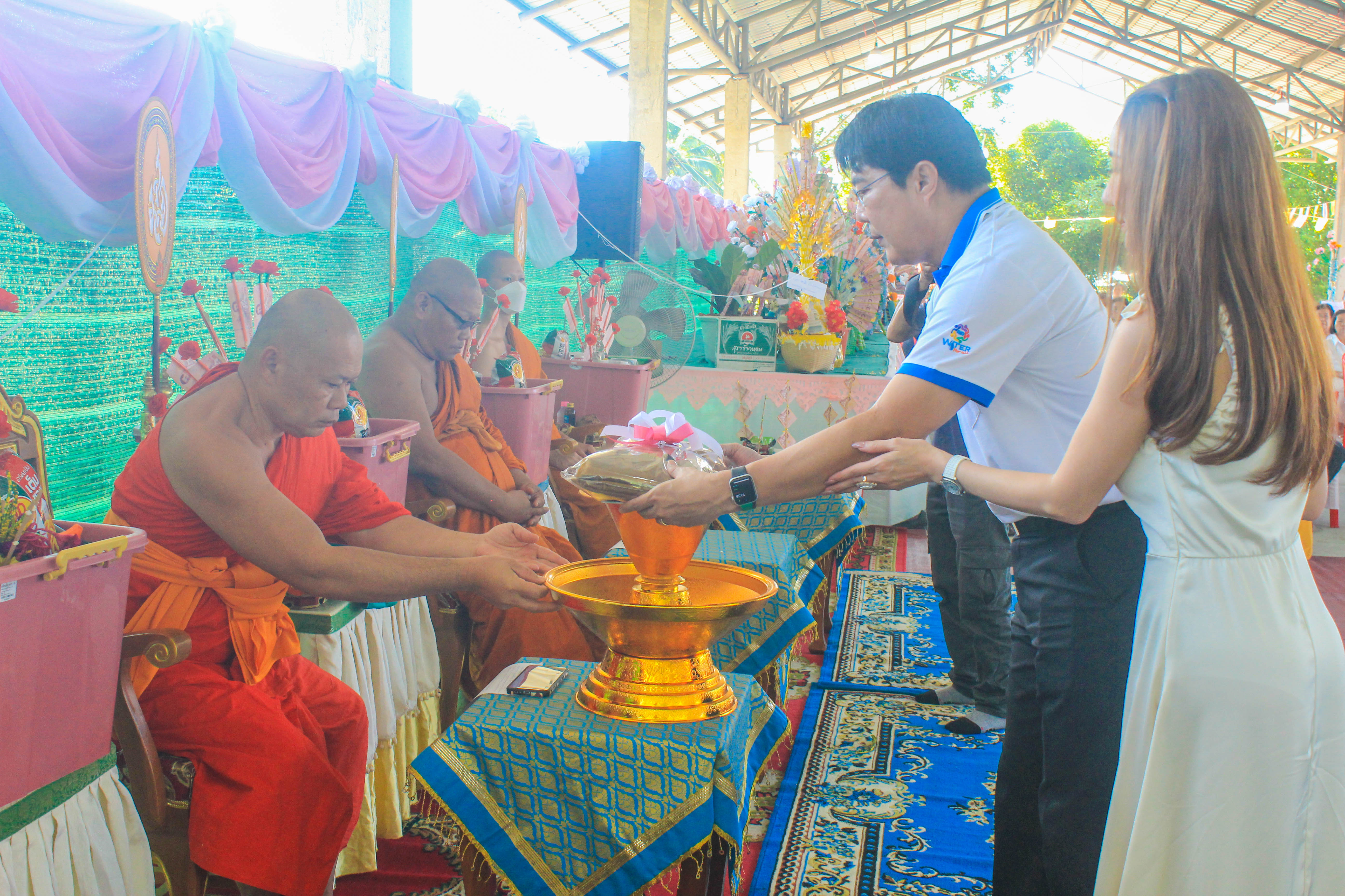 วันศุกร์ ที่ ๑๕ พฤศจิกายน พ.ศ.๒๕๖๗ เวลา ๐๙.๕๙ น. โครงการส่งน้ำและบำรุงรักษาแม่แฝก-แม่งัดสมบูรณ์ชล จัดพิธีถวายผ้ากฐินสามัคคี ณ วัดใหม่มงคลชัย (ห้วยบอน) ตำบลแม่โป่ง อำเภอดอยสะเก็ด จังหวัดเชียงใหม่ โดยมีนายเฉลิมเกียรติ อินทกนก ผู้อำนวยการโครงการส่งน้ำและบำรุงรักษาแม่แฝก-แม่งัดสมบูรณ์ชล และครอบครัว เป็นเจ้าภาพมหาทานกาลกฐินสามัคคี พร้อมด้วยนายอัธยา อรรณพเพ็ชร ผู้อำนวยการโครงการส่งน้ำและบำรุงรักษาแม่กวงอุดมธารา นายสุภรณ์วัฒน์ สุรการ ผู้อำนวยการโครงการชลประทานลำพูน และข้าราชการ เจ้าหน้าที่โครงการส่งน้ำและบำรุงรักษาแม่แฝก-แม่งัดสมบูรณ์ชล เจ้าหน้าที่โครงการส่งน้ำและบำรุงรักษาแม่กวงอุดมธารา เจ้าหน้าที่โครงการชลประทานลำพูน ผู้นำชุมชนในพื้นที่ ตลอดจนประชาชนผู้มีจิตศรัทธาร่วมในพิธีถวายผ้ากฐินสามัคคีในครั้งนี้ เพื่อสมทบทุนในการก่อสร้างศาลาปฏิบัติธรรมวัดใหม่มงคลชัย ขนาดกว้าง ๘ เมตร ยาว ๓๖ เมตร อีกทั้งยังเป็นการร่วมสืบสานประเพณีอันดีงามของไทย และทำนุบำรุงพระพุทธศาสนา